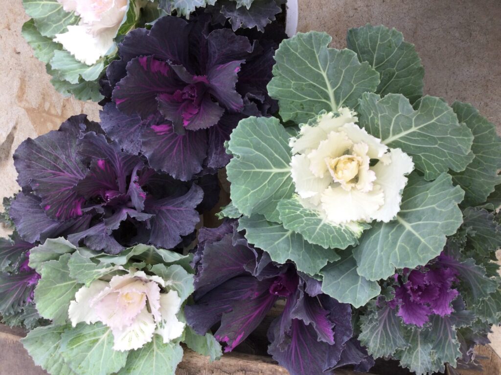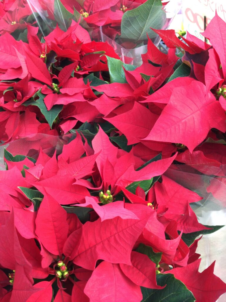 真っ赤なポインセチアや3種類の葉牡丹が入った鉢物がおすすめです!